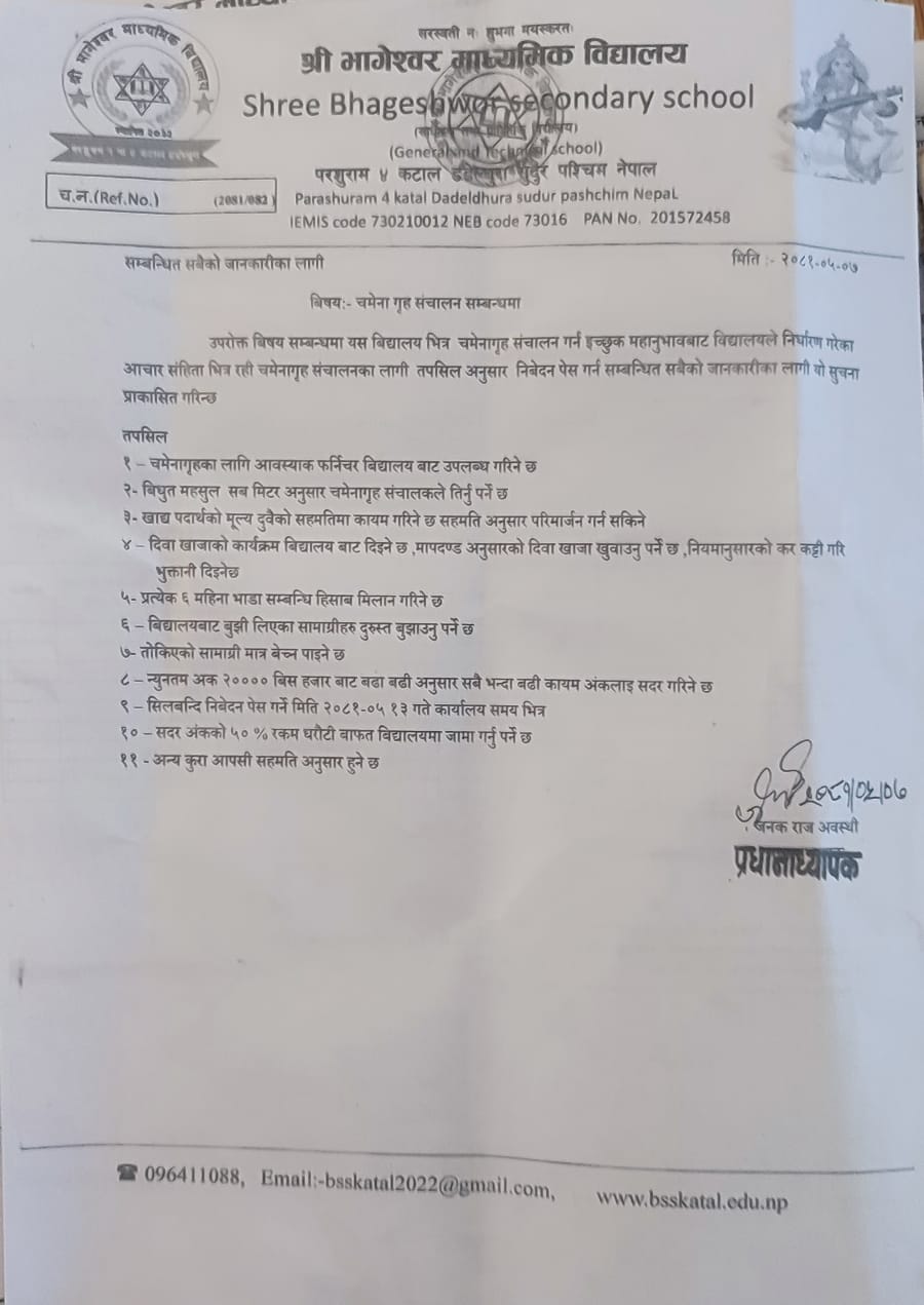चमेनागृह संचालनका लागी निबेदन पेस गर्ने सम्बन्धि सुचना