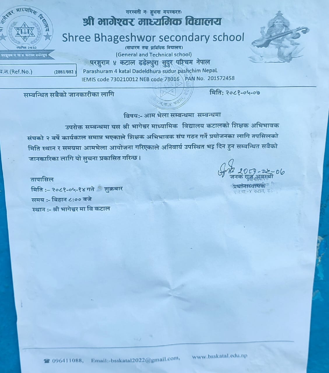 शिक्षक अभिभावक संघ गठनका लागी आम भेला सम्बन्धि अत्यन्त जरुरी सुचना