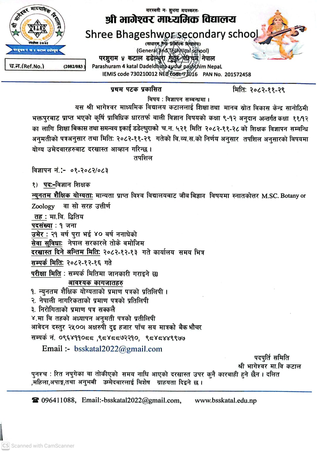 शिक्षक आवश्यकता सम्बन्धि सुचना